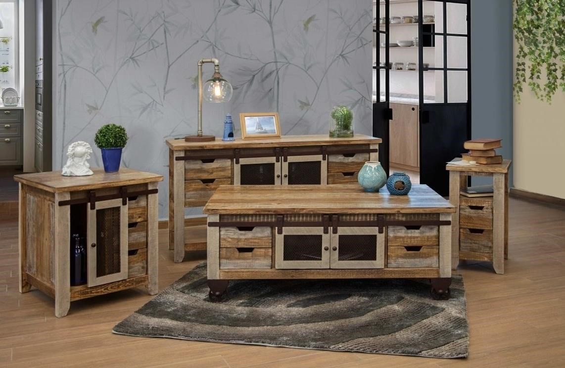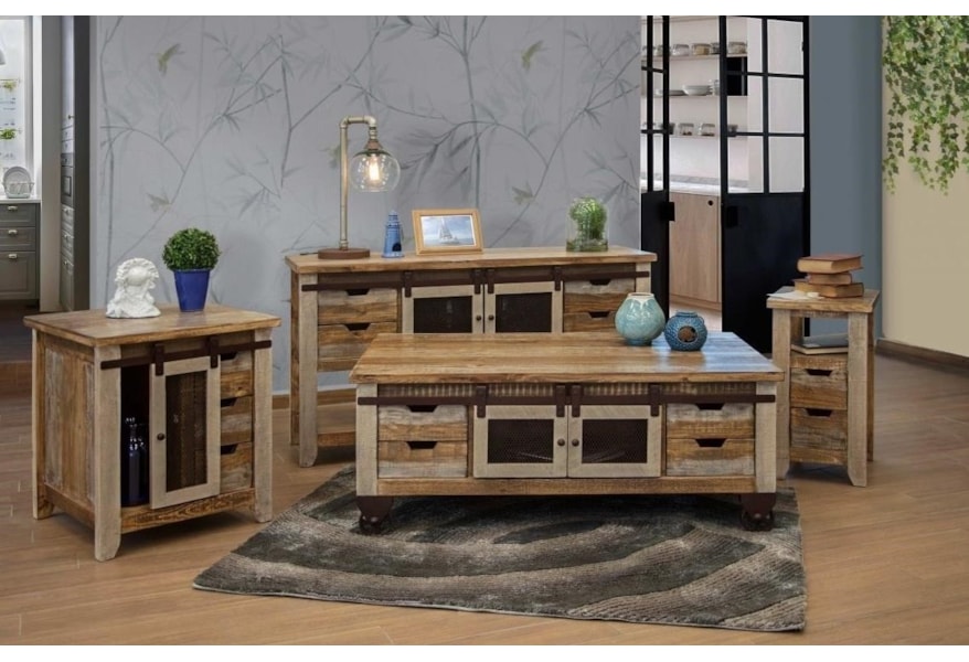 International Furniture Direct 900 Antique Rustic End Table With 1 Door And 3 Drawers Westrich Furniture Appliances End Tables