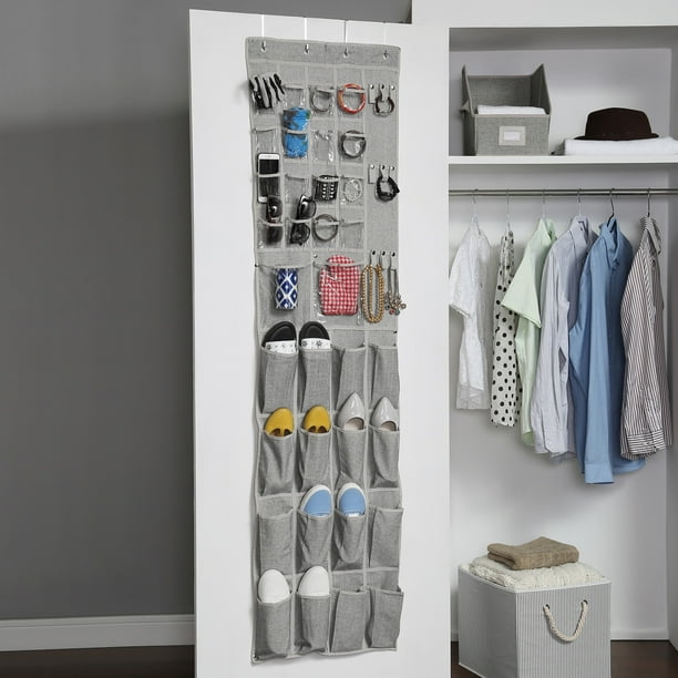 24 Pockets Simplehouseware Crystal Clear Over The Door Hanging Shoe Organizer Gray 64 X 19 Walmart Com Walmart Com