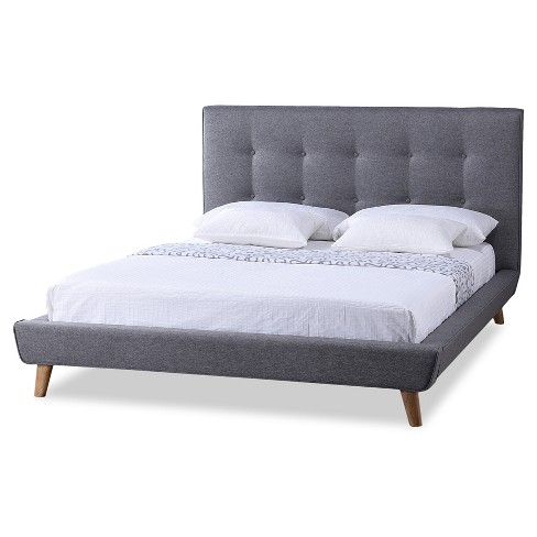 Baxton Studio Alinia Mid Century Retro Modern Fabric Upholstered Walnut Wood Platform Bed Queen Gray Amazon In Home Kitchen
