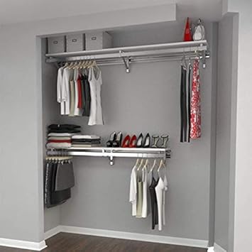 Rod shelving provides shelf and hanging space for bedroom laundry or where extra space is needed. Deluxe Shield and Rod Closet Organizer is ideal for keeping your closet space neat and tidy Fits reach-in closets 5 to 8 15 to 24 m wide Consists of convenient shelf and rod system Kit includes 9 27 mof hanging space and 19 57 m of shelfspace. Easily add economical and minimalist storage to any room that needs additional shelving and hanging storage with these laminate kits from ClosetMaid.