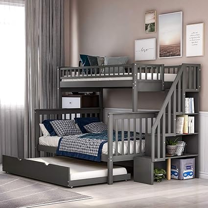 Merax Twin Over Full Stairway Bunk Trundle Bed and Storage Gray. You will have two single beds on top of each other with or without storage options and a ladder. Durable high-quality pine wood structure.