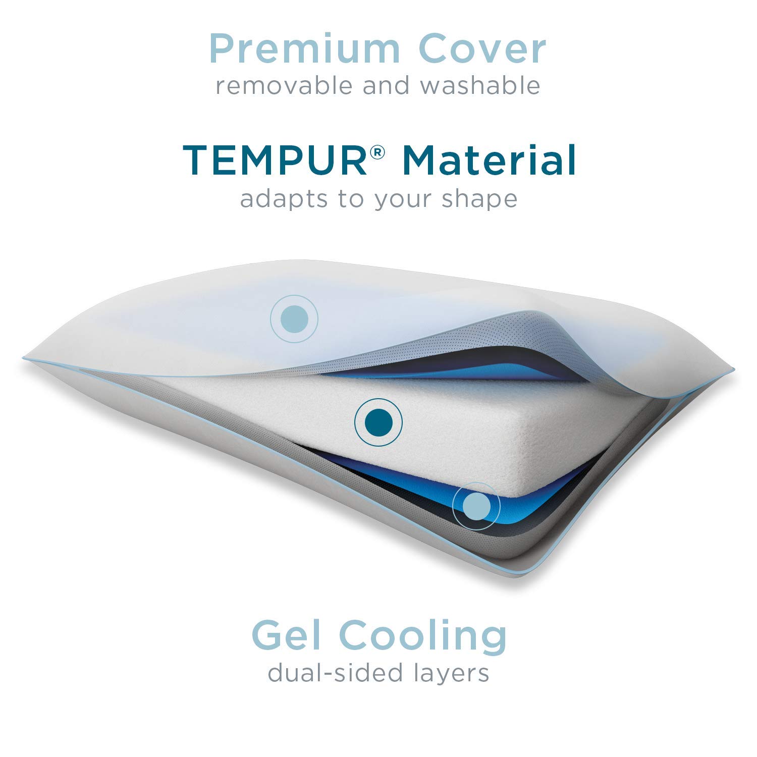 The memory foam pillow uses gel pads on both sides to dissipate heat. Get adaptive support from exclusive TEMPUR material and stay cooler throughout the night with layers of cooling gel on both sides.