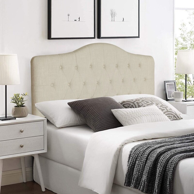 Adeco Queen Upholstered Headboard Beige Linen Fabric Headboard Panel For Queen Beds Adjustable Height From 50 8 To 55 3 Headboards Bedroom Furniture