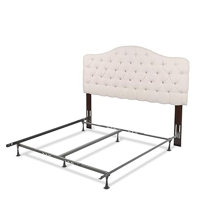 Leggett Platt Martinique Complete Bed With Adjustable Height Button Tuft Upholstered Headboard And Steel Support Frame Ivory Finish Full Queen Amazon In Home Kitchen