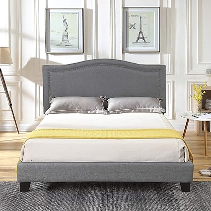 Upholstered Bed Frame Queen King Full Size Weyoung 55 Tall Headboard Height Adjustable Platform Bed With Slats Box Spring Needed Grey Full Amazon In Home Kitchen