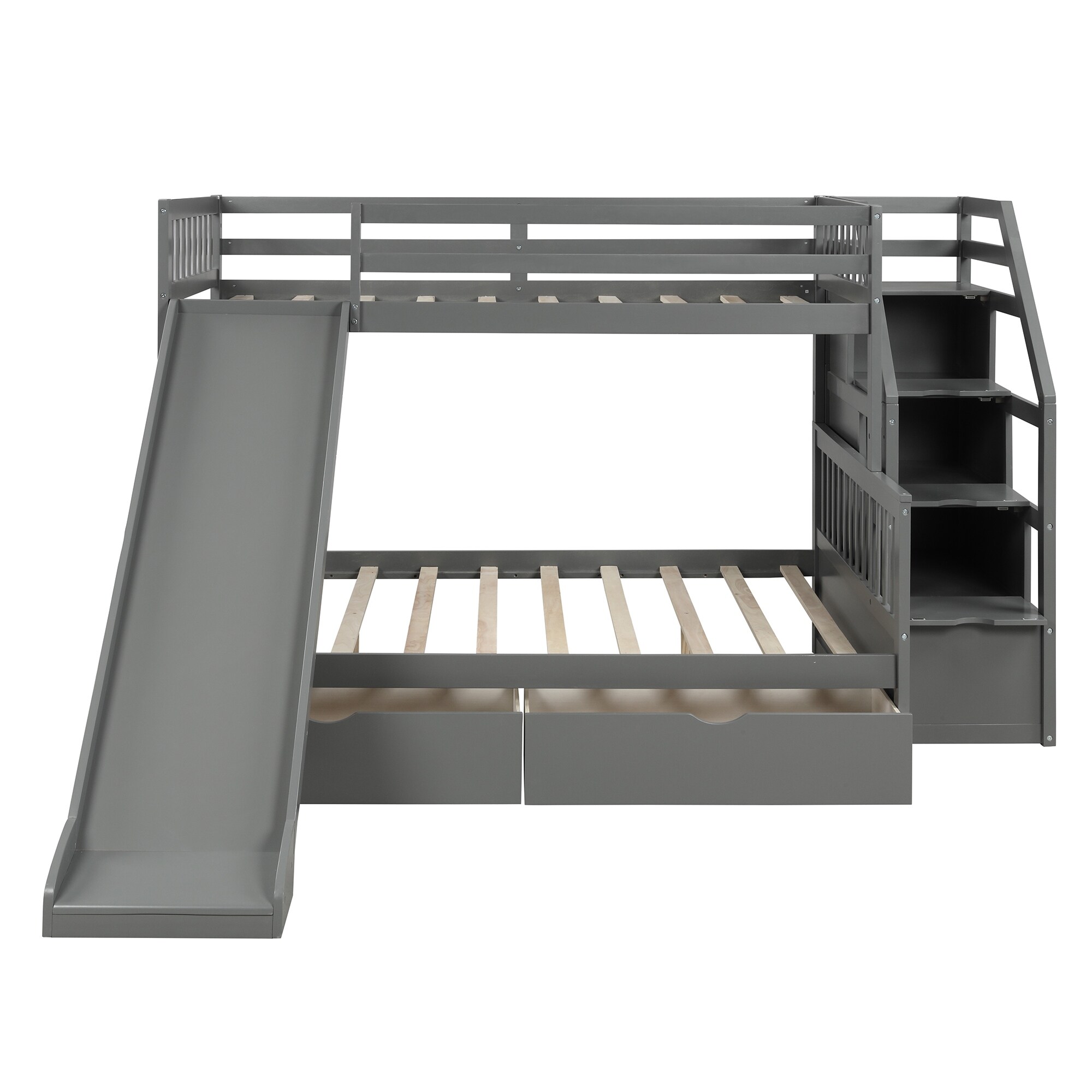 Twin Over Full Bunk Bed with Storage and SlideStackable Wood Twin Over Full Bunk. Staircase is a safe way for young children to climb into bed plus each step doubles as a storage drawer. Twin Over Full bunk Bed Solid Wood Bunk Bed Frame with 3 Storage Grids and Slide Can be Divided into Two Beds Twin Over Full bunk beds Twin Over Full bunk beds Gray 47 out of 5 stars 4 72999 729.