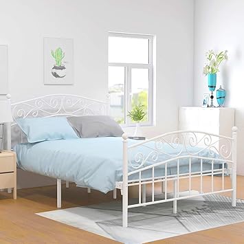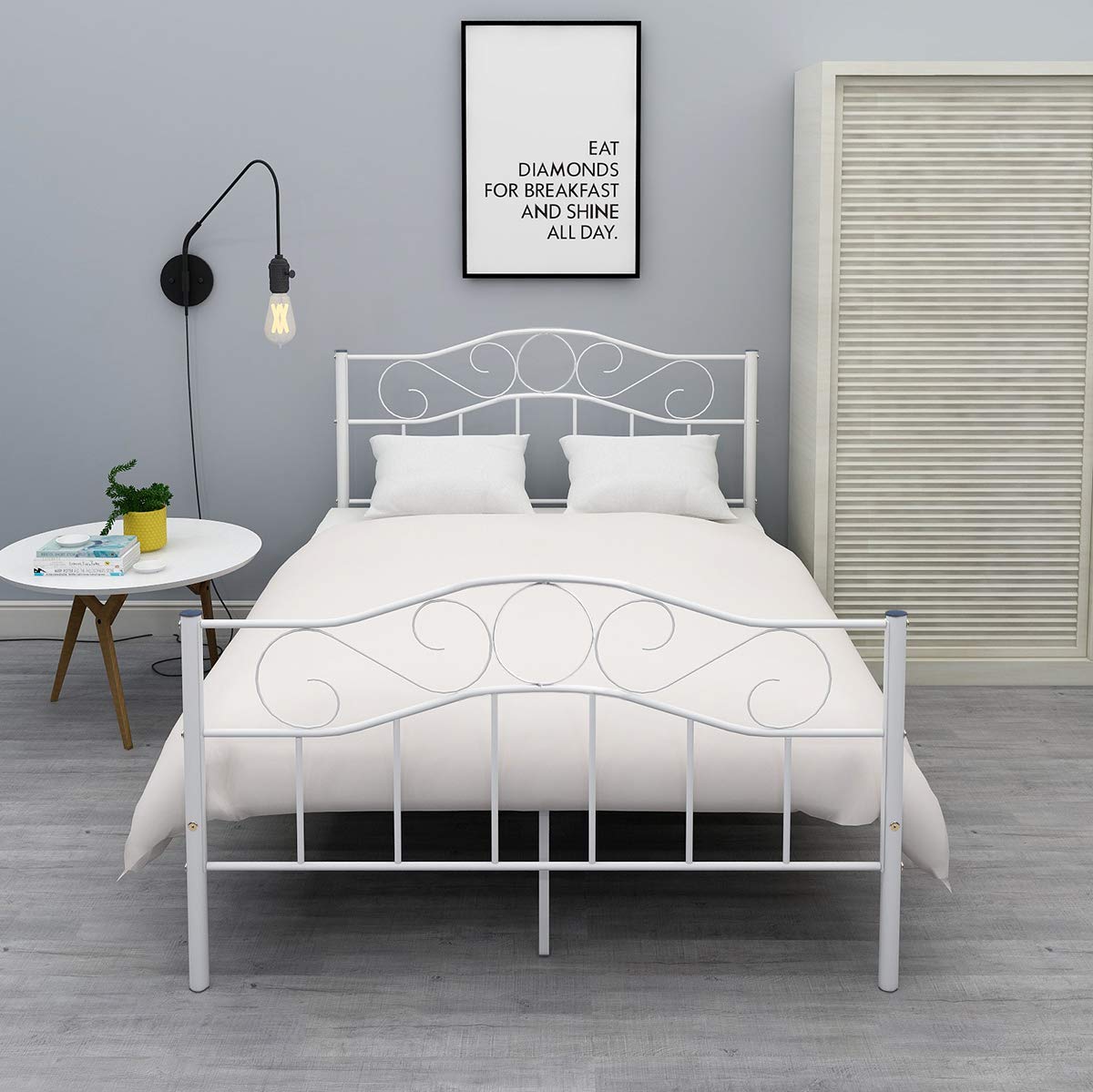 Aufank Metal Beds Victorian Style Platform Bed Frame With Headboard Footboard Heavy Duty Slat No Box Spring Full Size White Amazon In Home Kitchen