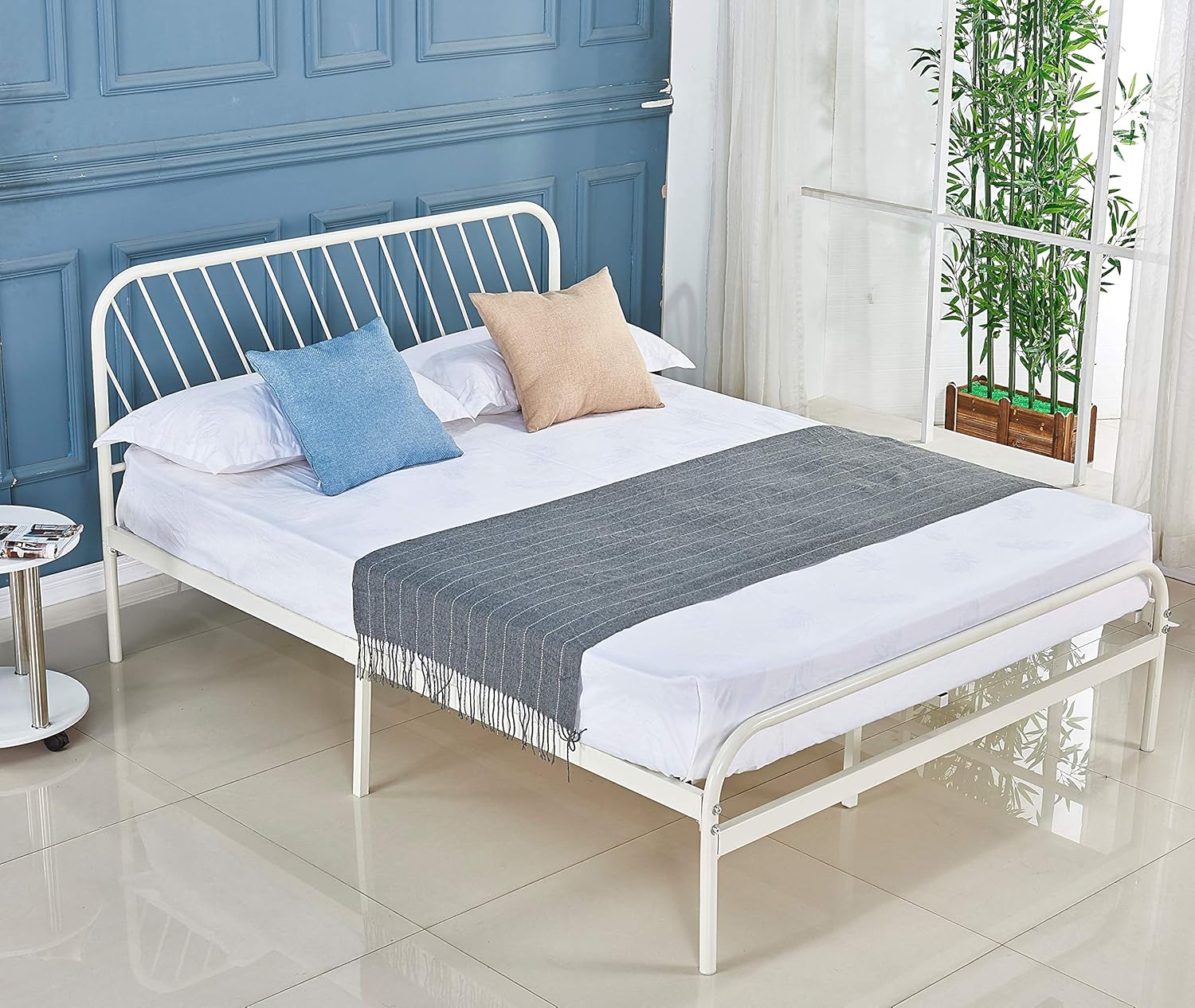 Metal Bed Frame Full Size Headboard Footboard Bedroom Furniture Platform White Beds Bed Frames Bedding